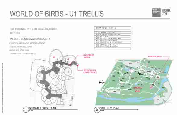 The Wildlife Conservation Society contacted me regarding a large shade structure for the Bronx Zoo World of Birds Exhibit. The Conservation Society knew the trellis would be 67’ long, but they had no idea of the cost of materials. The zoo had received an outrageously expensive quote from a general contractor, so the Society decided to bid the project themselves
